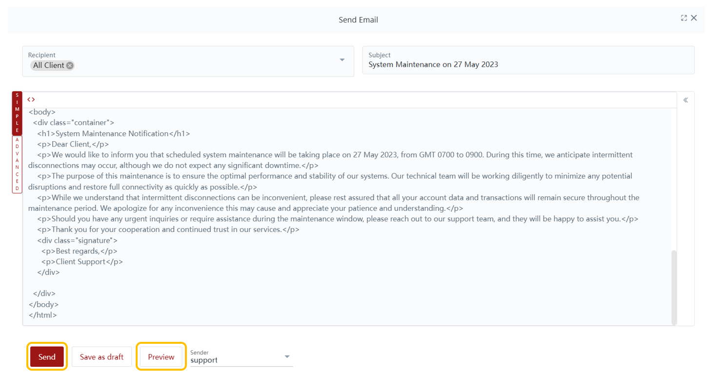 HTML Code: Brokers can create email content and design by using HTML code, allowing for greater customization and visual appeal.