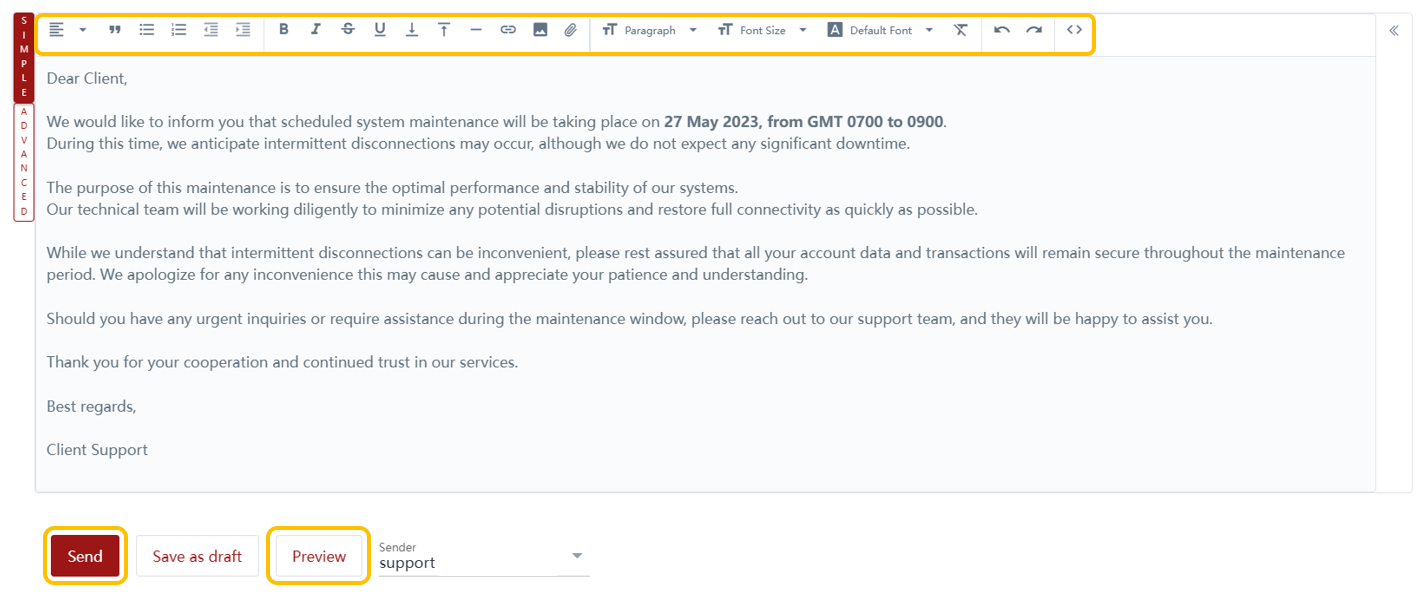 Manual Entry: Brokers can manually input the email content and send it to clients without any specific design elements.