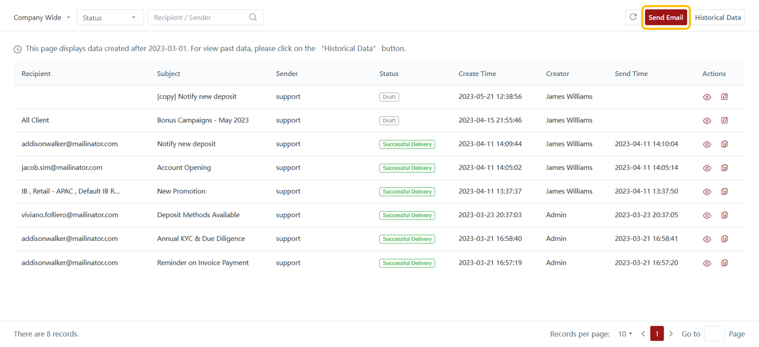 To send out a new email notification, brokers will need to click "Send Email".