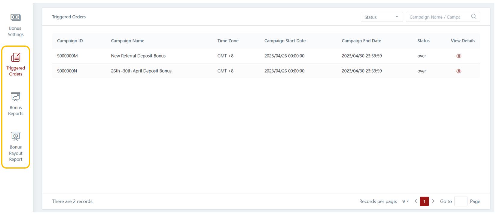 Bonus Reports - The Bonus Report provides detailed information on the bonus amount associated with each triggered order. It also specifies the respective bonus payout recipients. This report enables you to track the bonus amount allocated to each recipient accurately.