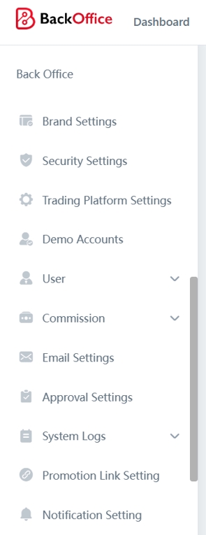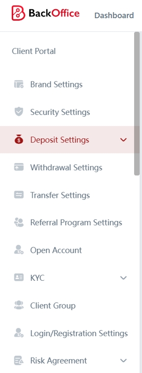 2. Back Office Portal: This category covers settings associated with the CRM Back Office Portal.