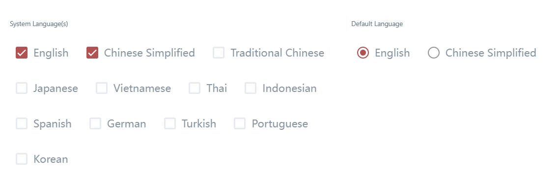 System Language & Default Language: Customize the available languages for the CRM Back Office Portal. You can select multiple languages to cater to a diverse user base. Additionally, you can set a default language that will be displayed when users access the portal. This allows users to view and interact with the CRM in their preferred language, enhancing their overall experience.
