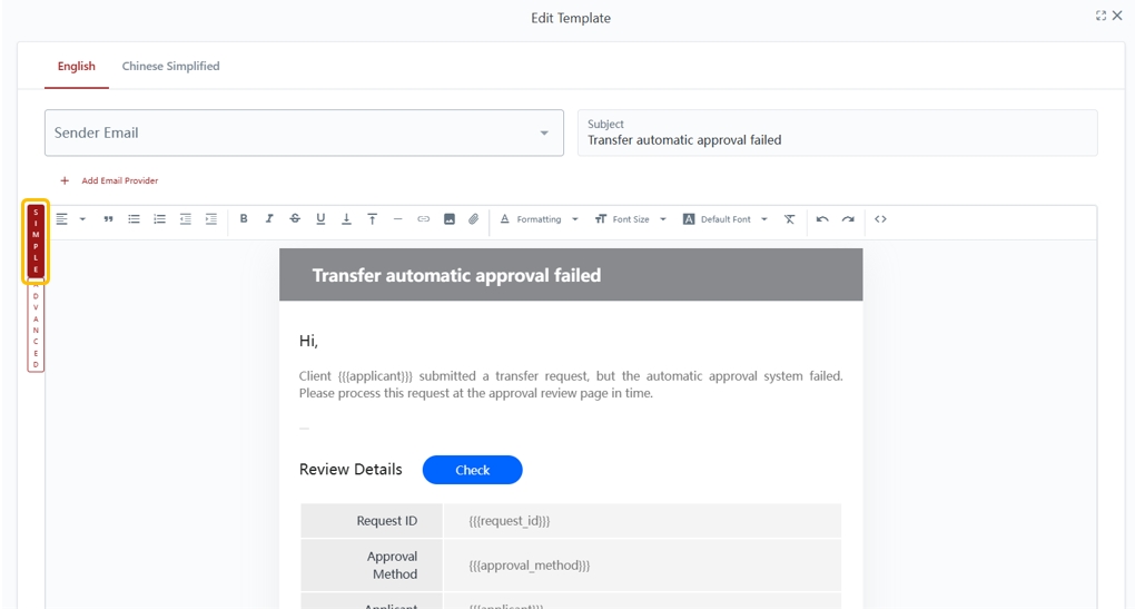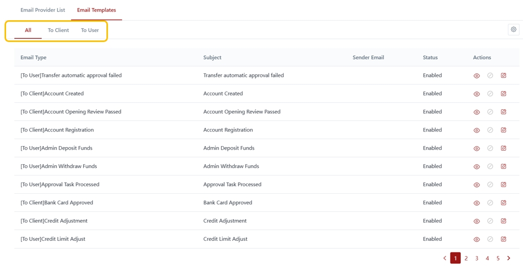 In the Email Templates section, you can customize and configure the email templates that are sent to your clients or back office users.