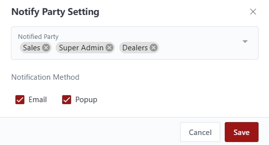 In the Notification Settings page, you can customize and configure notifications on the CRM to be sent to specific parties. You have the option to choose between email notifications or popup notifications within the CRM. This allows you to assign the appropriate individuals who will receive notifications for different events or actions, ensuring that the relevant personnel can promptly follow up on important matters.