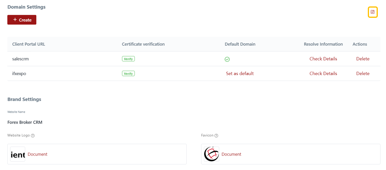 In the Brand Settings page, you can configure the following options for your CRM Client Portal: