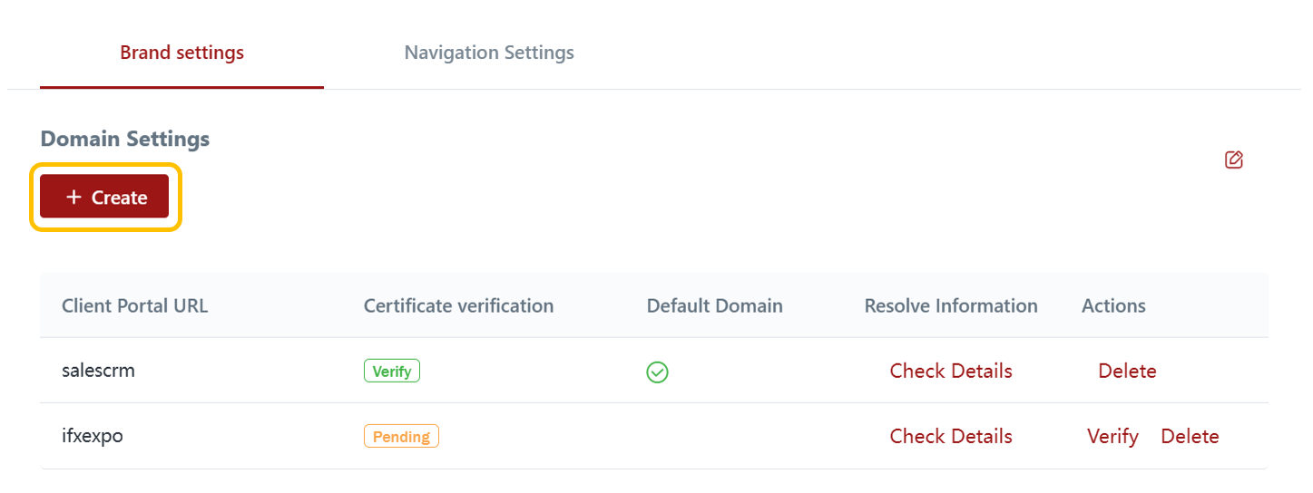 In the Domain Settings page, you can configure the domain for your CRM Client Portal. This feature enables you to add multiple domains to your CRM Client Portal for various purposes, such as catering to different client regions or organizing promotional events.