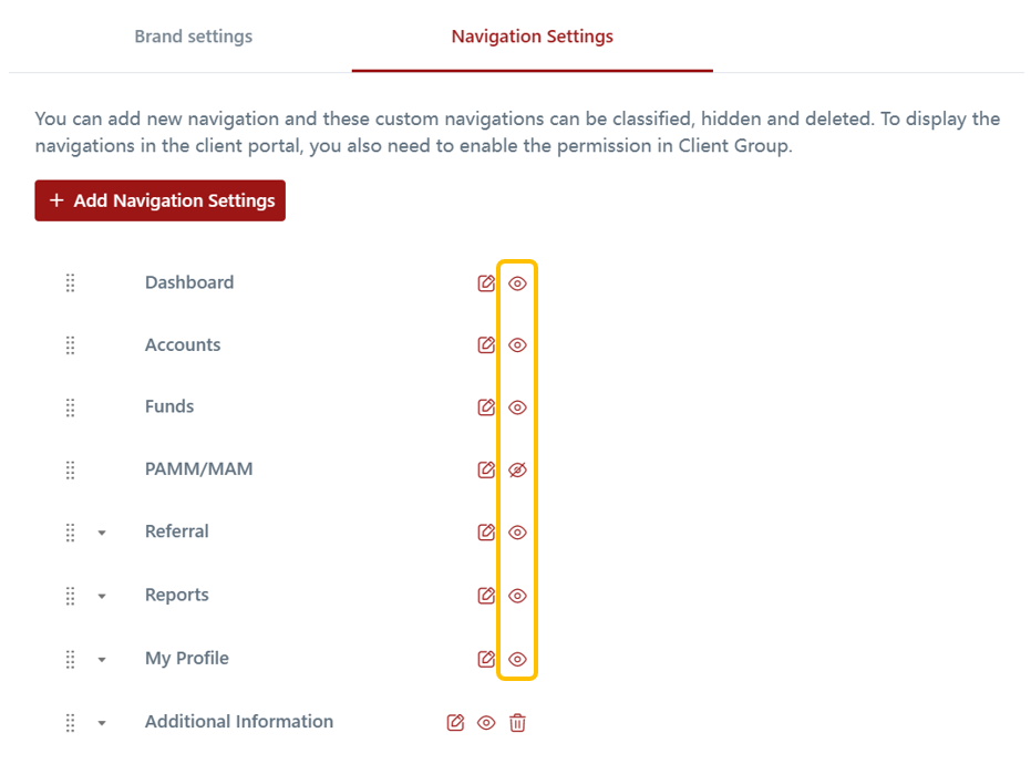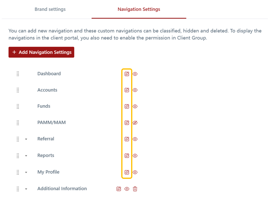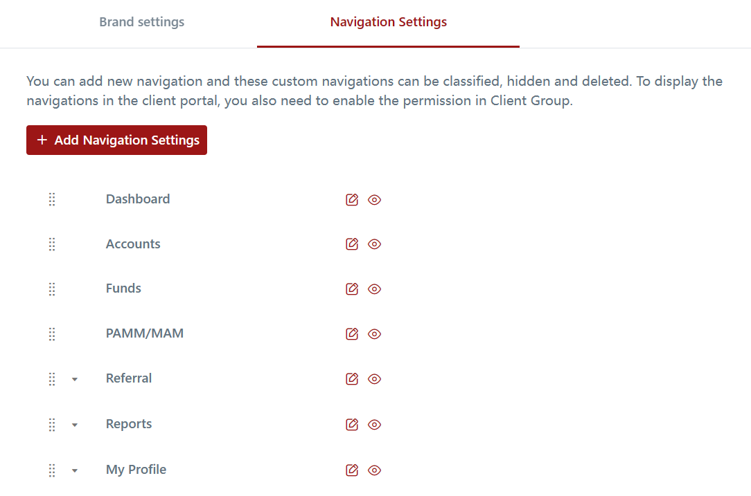 In the Navigation Settings of the CRM, you have the ability to create custom tabs for your clients on the CRM Client Portal. This feature enables you to add additional tabs that are not available by default, providing a more customized experience for your clients.