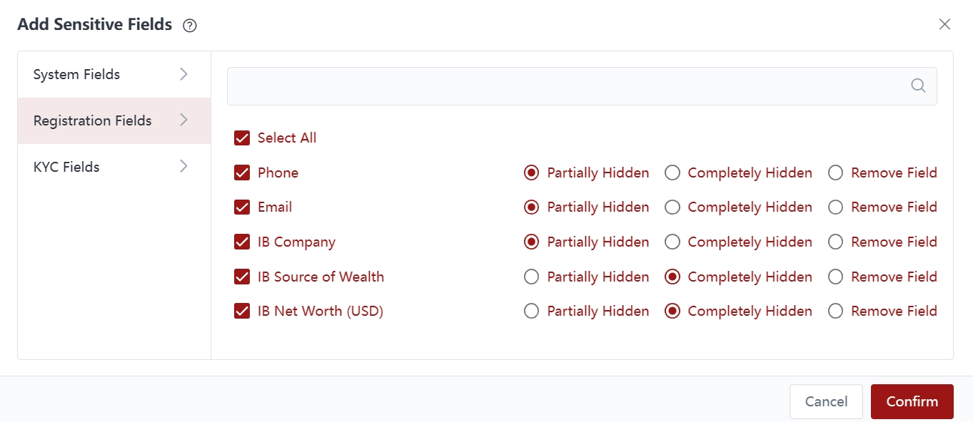 You have the option to enhance client privacy and security on the CRM client portal by hiding sensitive data. This includes information such as client's phone numbers, identification numbers, and trading activities. This helps to safeguard client confidentiality and ensures that only authorized individuals have access to sensitive information.