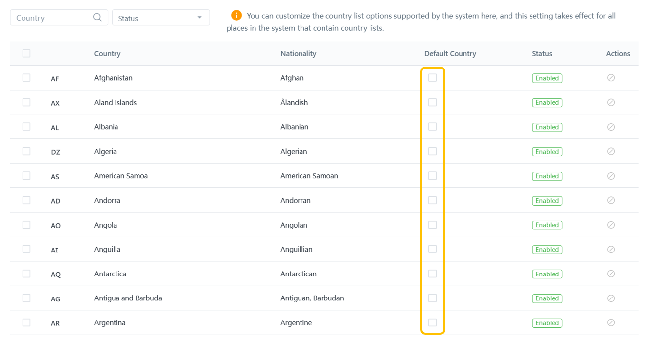 6) Country List Options