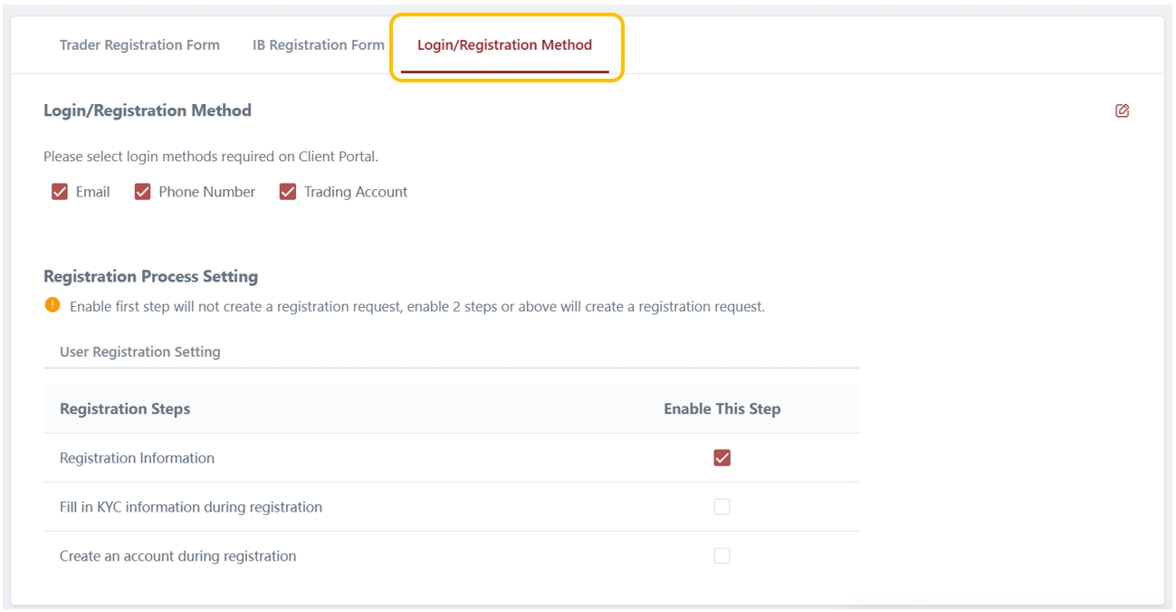 On the other hand, if you prefer a one-stop registration process that enables clients to immediately start trading upon completion, you can opt to include the KYC form and the trading account request alongside the registration form. This streamlines the process by allowing clients to submit all relevant information in a single step, expediting the account creation and trading initiation.