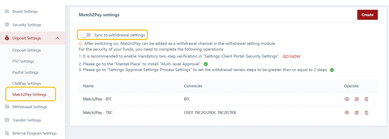 You can also enable Match2Pay withdrawal for your clients.