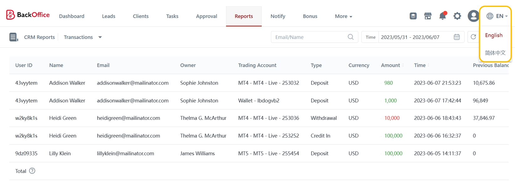 You have the flexibility to switch between different languages in the CRM based on your preference. This allows you to use the CRM interface and access its features in a language that you are most comfortable with.
