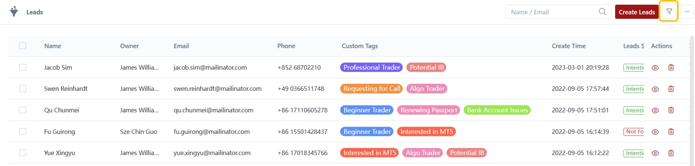 Brokers can perform multiple functions to refine or filter their leads data for better analysis, monitoring and tracking. The functions include:
