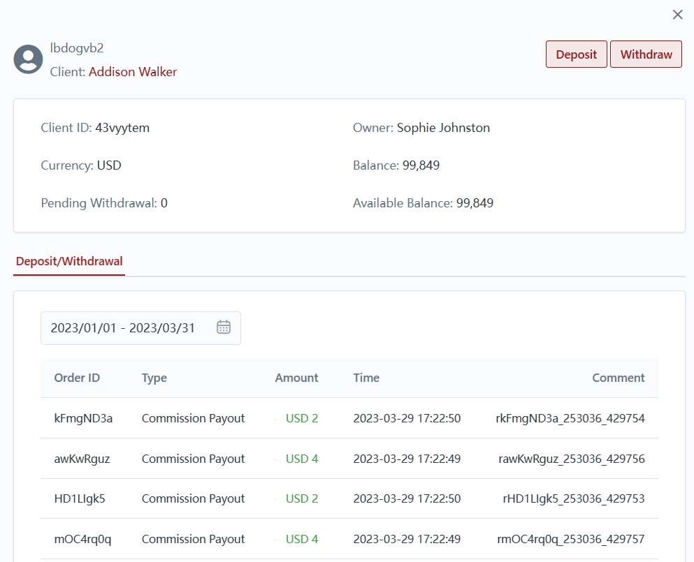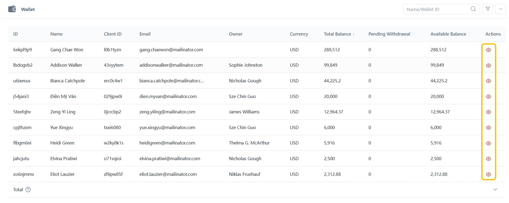 Brokers will be able to view and edit the details of the wallets by selecting the respective wallet and clicking the "View" icon.
