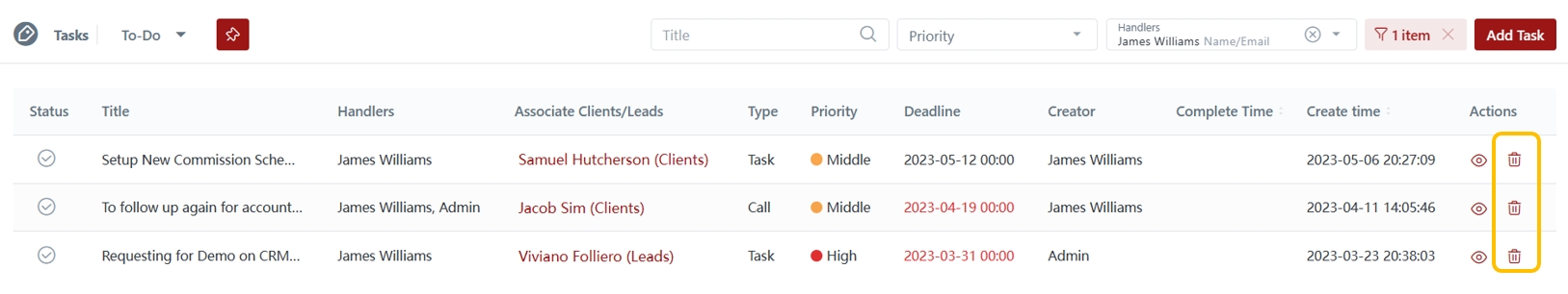 You can edit tasks by clicking onto the "View" icon and making the respective changes.